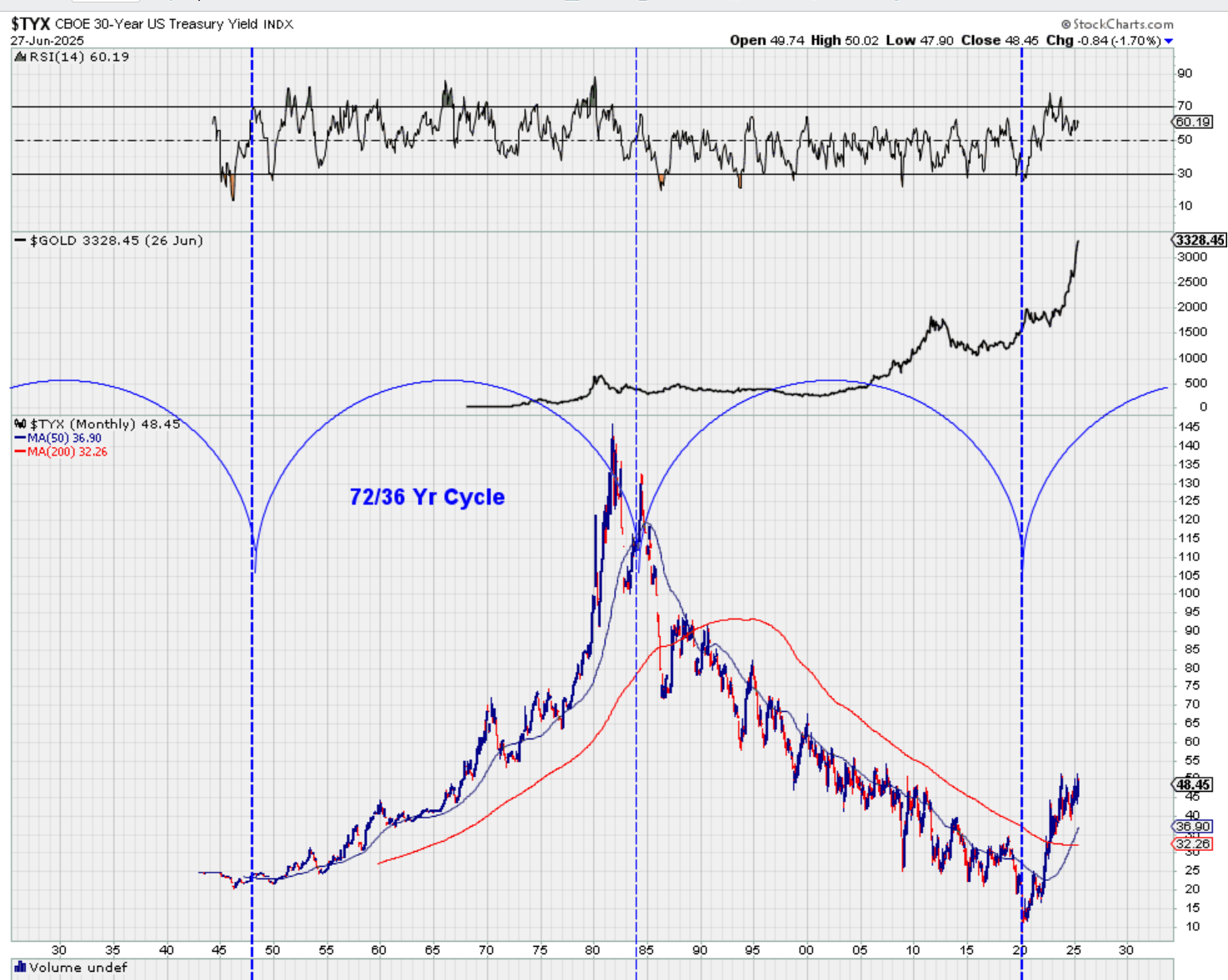 Needs updating. Supposedly a near exact 72 year cycle ended about 2020, started about 1950. The inflation started with a good burst, then receded, but continued a long sawtooth ramp up to the ~ 1980 peak. Kind of like what is going on now. If some sort of repeat occurs hell is coming, with the next big top occurring after most of us are gone. I would be in my 90's. Right now were still in a semi sweet spot.