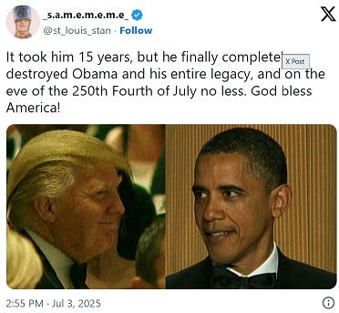 I was going to write one again this year but Congress passed the cornerstone legislation of Trump’s second presidency, eclipsing my desire to look at past Fourth of July jubilations.