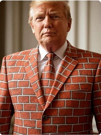 Trump spotted Brick Suit in the crowd in Iowa last night. The president said, “I like that suit. I'll wake up one day and I'll be dressed like a wall, just like you.”