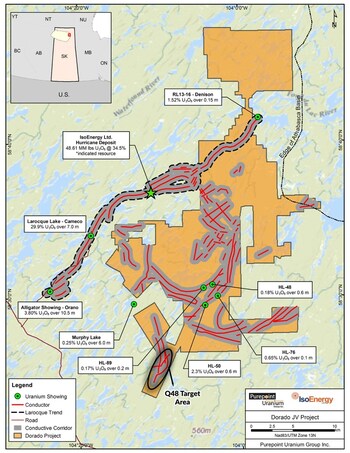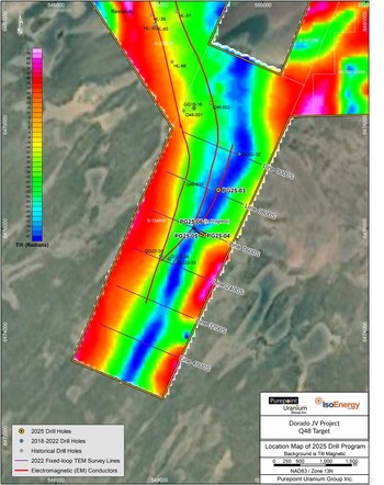 newswire.ca News provided by IsoEnergy Ltd. Jul 08, 2025, 06:30 ET TORONTO, July 8, 2025 /CNW/ - IsoEnergy Ltd. (NYSE American: ISOU) (TSX: ISO) ("IsoEnergy") and Purepoint Uranium Group Inc. (TSXV: PTU) (OTC: PTUUF) ("Purepoint") are pleased to announce a highly encouraging start to the inaugural drill program at their 50/50 Dorado project ("Dorado" or the "Project'"), located in Saskatchewan's world-class Athabasca Basin (Figure 1). Initial drilling at the Q48 target on the Project, completed by Purepoint as the operator of the program, intersected uranium mineralization in two holes, with downhole gamma probe readings up to 79,800 counts per second (CPS). The intercepts occur within strongly altered basement rocks –suggesting an active uranium-bearing hydrothermal system.