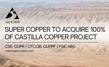 VANCOUVER, BC, July 8, 2025 /CNW/ - SUPER COPPER CORP. (CSE: CUPR) (OTCQB: CUPPF) (FSE: N60) ("Super Copper" or the "Company"), is pleased to announce it has entered into a binding, all-cash definitive agreement to acquire 100% of the Castilla Copper Project ("Castilla" or the "Castilla Project") from Verdant Resources SpA, a private Chilean company comprised of geologists and mining professionals.