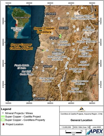 - Logistical synergies: Castilla sits ~65 km by paved road from Copiapó and ~95 km from Super Copper's Cordillera Cobre project, allowing shared personnel, contractors and permitting resources.