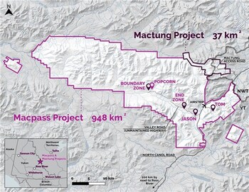 Map 1: Macpass Project and Mactung Project locations (CNW Group/Fireweed Metals Corp.)
