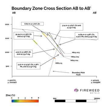 Cross section AB to AB': NB25-003, NB25-004, and NB25-005 (CNW Group/Fireweed Metals Corp.)