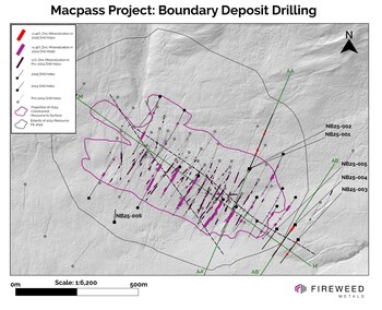 VANCOUVER, BC, July 30, 2025 /CNW/ - Fireweed Metals Corp. ("Fireweed" or the "Company") (TSXV: FWZ) (OTCQX: FWEDF) is pleased to report the results of the first drill holes from Boundary Zone targeting anomalies generated from the muon tomography survey as part of the 2025 drill campaign at its Macpass Project ("Macpass"), Yukon, Canada.