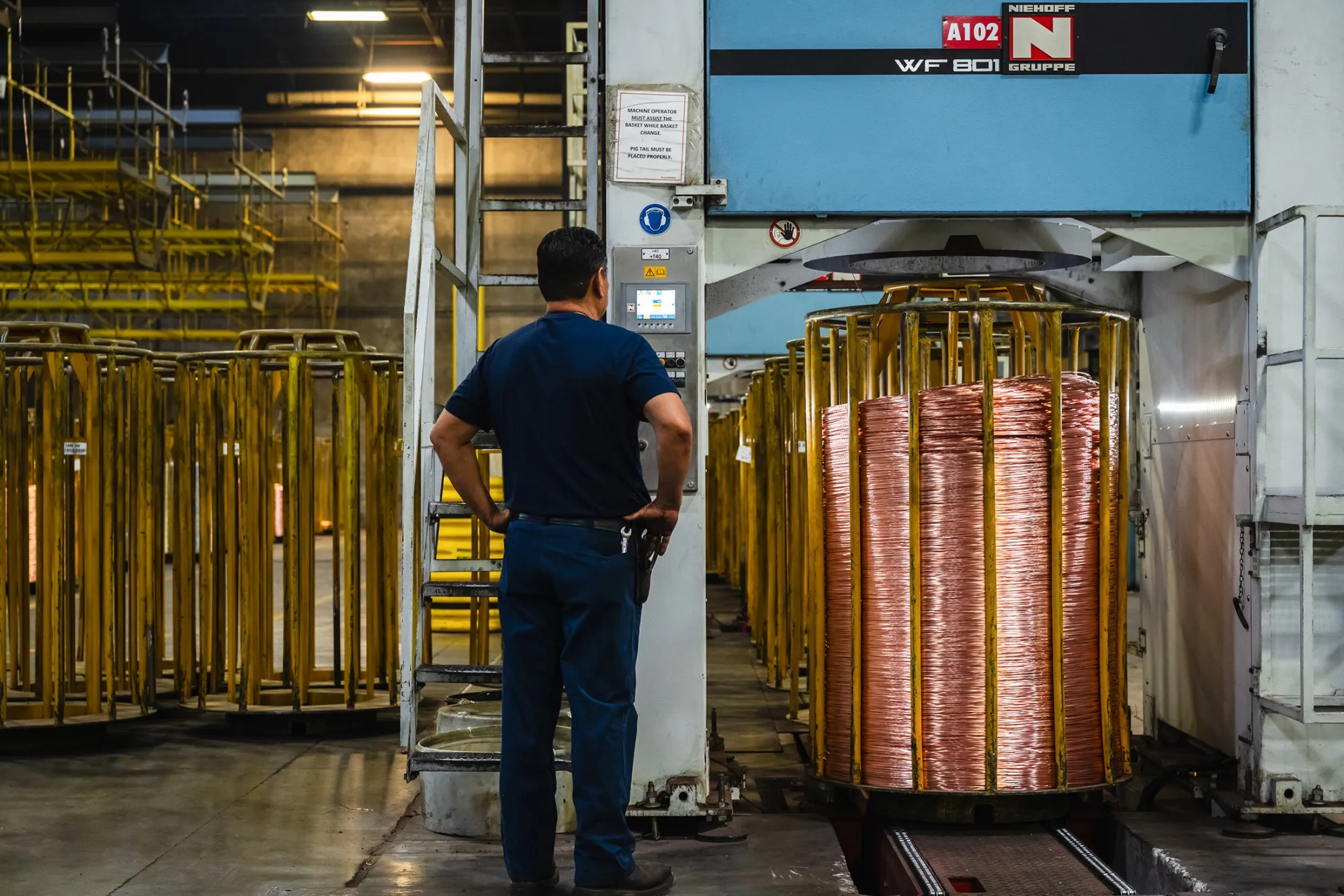 Copper wire being spooled at CN Wire Corporation in New Mexico in March.Photographer: Justin Hamel/Bloomberg