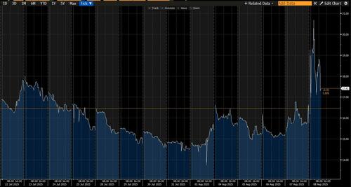 Regardless, exchange vols have rallied on the news, coming in through-out London session from a high of +4v d/d (Chart of 1m ATM listed implide vol).