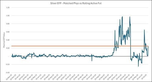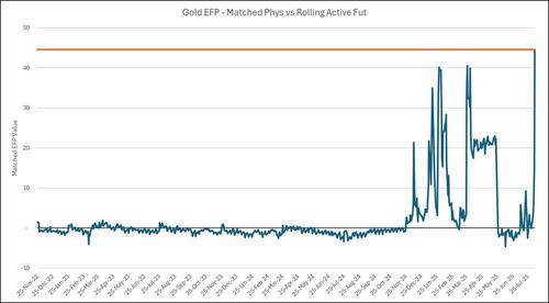 Rolling EFP on Active Gold Contract vs Matched-Date London Gold is now above previous highs…