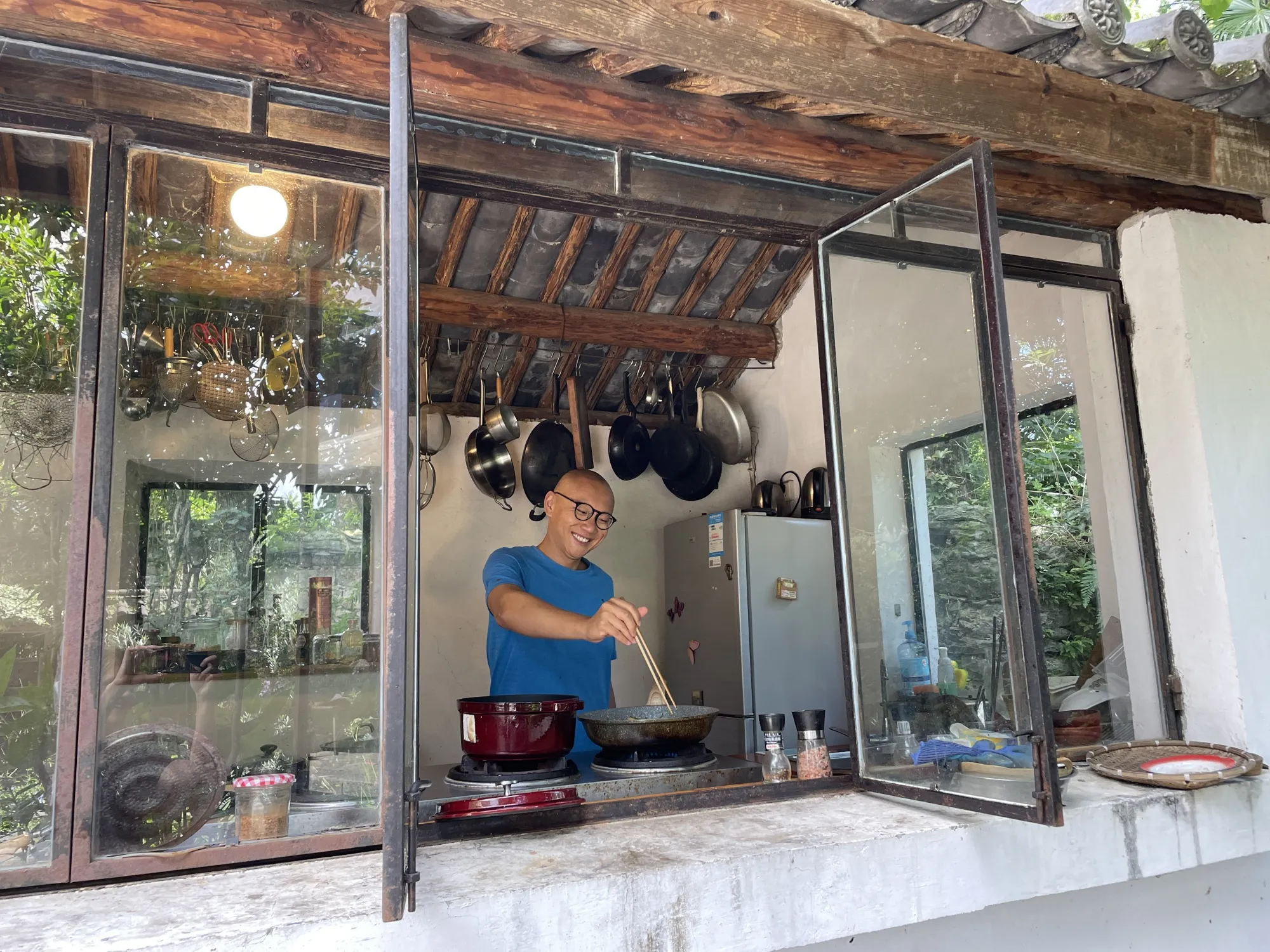 Wang cooking at a home in the Yunnan city of Dali, where he and his wife stayed for four months.
