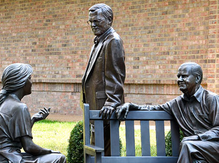 The Uncle Herschel memorial at the Home Office in Lebanon, Tennessee, features Uncle Herschel listening to a server. It also features a third unoccupied bench. This "invites" anyone to rest for a while an