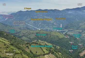 The Company's flagship project, Guayabales, is anchored by the Apollo system, which hosts the large-scale, bulk-tonnage and high-grade gold-silver-copper-tungsten Apollo system. The Company's objectives are to improve the overall grade of the Apollo  system by systematically drill testing newly modeled potentially  high-grade sub-zones, expand the newly discovered high-grade Ramp Zone  along strike and to depth and drill a series of greenfield generated  targets on the property.?