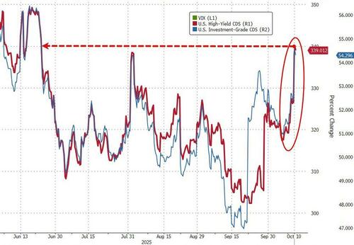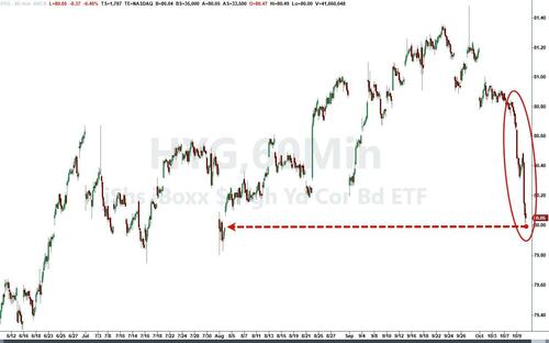 Credit markets are really starting to crack (as fears over private credit start to spread) with HYG tumbling (down 8 of the last 9 days, and breaking back below its 50- and 100-DMAs). This is the worst week for HY credit since the April Liberation Day crash...
