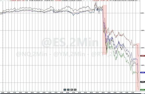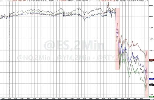 Nasdaq led the charge lower today (dropping over 3%!) and sure enough, selling pressure picked up into the close with everything tanking...