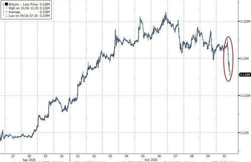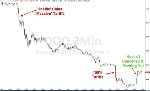 Having already tanked stocks for the day, President Trump took to social media once again, confirming that as of Nov 1st, the US will be imposing a tariff of 100% on China, over and above any Tariff that they are currently paying" and "will impose Export Controls on any and all critical software."