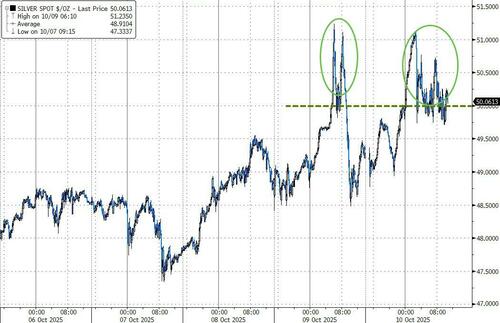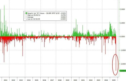 As @GarrettGoggin noted on X: "Futures are trying to take Silver down, but they can't because spot demand is so strong. Record $3.00 backwardation. This is an epic battle."