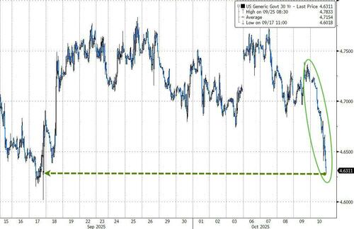 The government shutdown continues, federal layoffs started en masse today, and President Trump dropped a tariff tape-bomb intraday, sending stocks and bond yields notably lower on the day (and for the week).