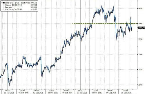 Gold rallied for the 8th week in a row, topping $4000 for the first time (and rising today amid all the carnage)...