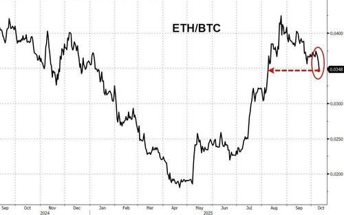 Ethereum underperformed even more, dragging the ETH/BTC pair down to its weakest in two months...