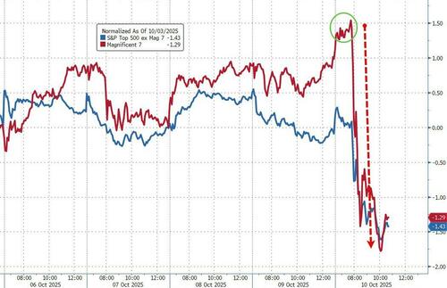 Mag7 stocks had been strongly outperforming the S&P 493 ahead of today's plunge, but after they are in sync and both down significantly on the week...