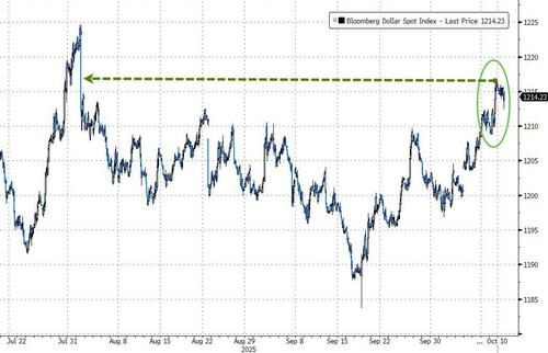 The dollar also rallied on the week (thanks to yen weakness predominantly) to its strongest since Aug 1st...