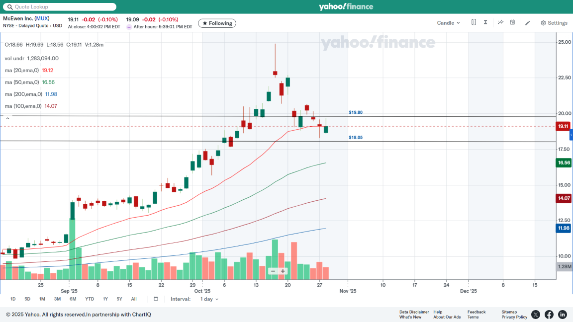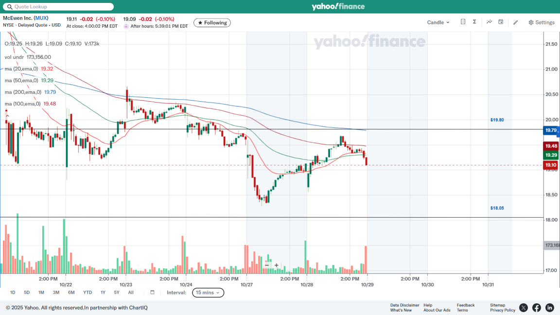 3-charts. - Monday, ...MUX closed 1¢ above the 20-day-ema. Today, Tuesday, ...MUX closed 1¢ below the 20-day ema. One has to wonder!!! Thank you to those for taking the time to read my posts and giving me Recommendation, I appreciate it.