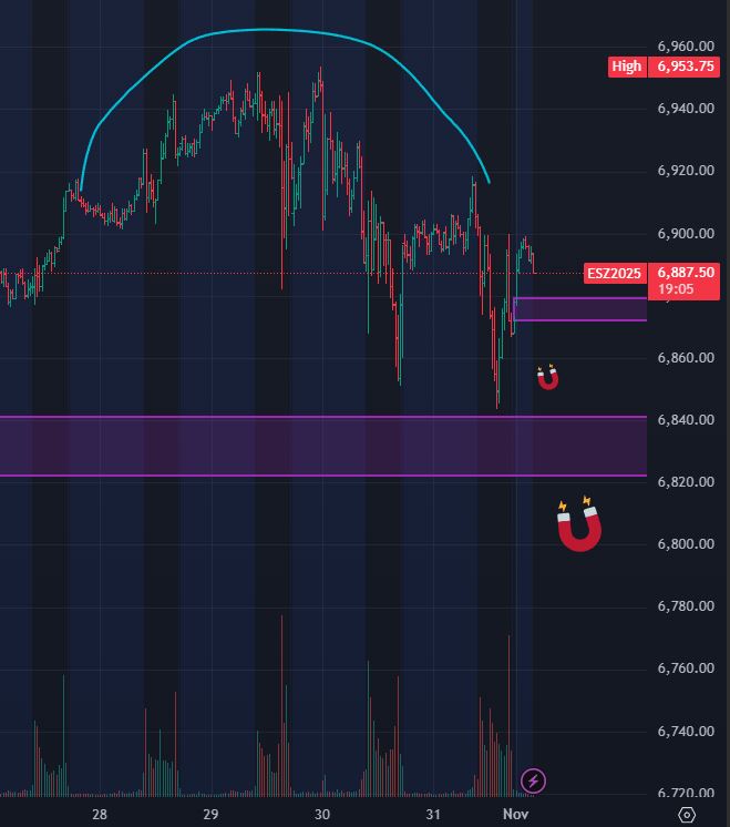 Two magnets in play now with a rounding top on the 30 min ... technical analysis is very simple no need to over complicate it