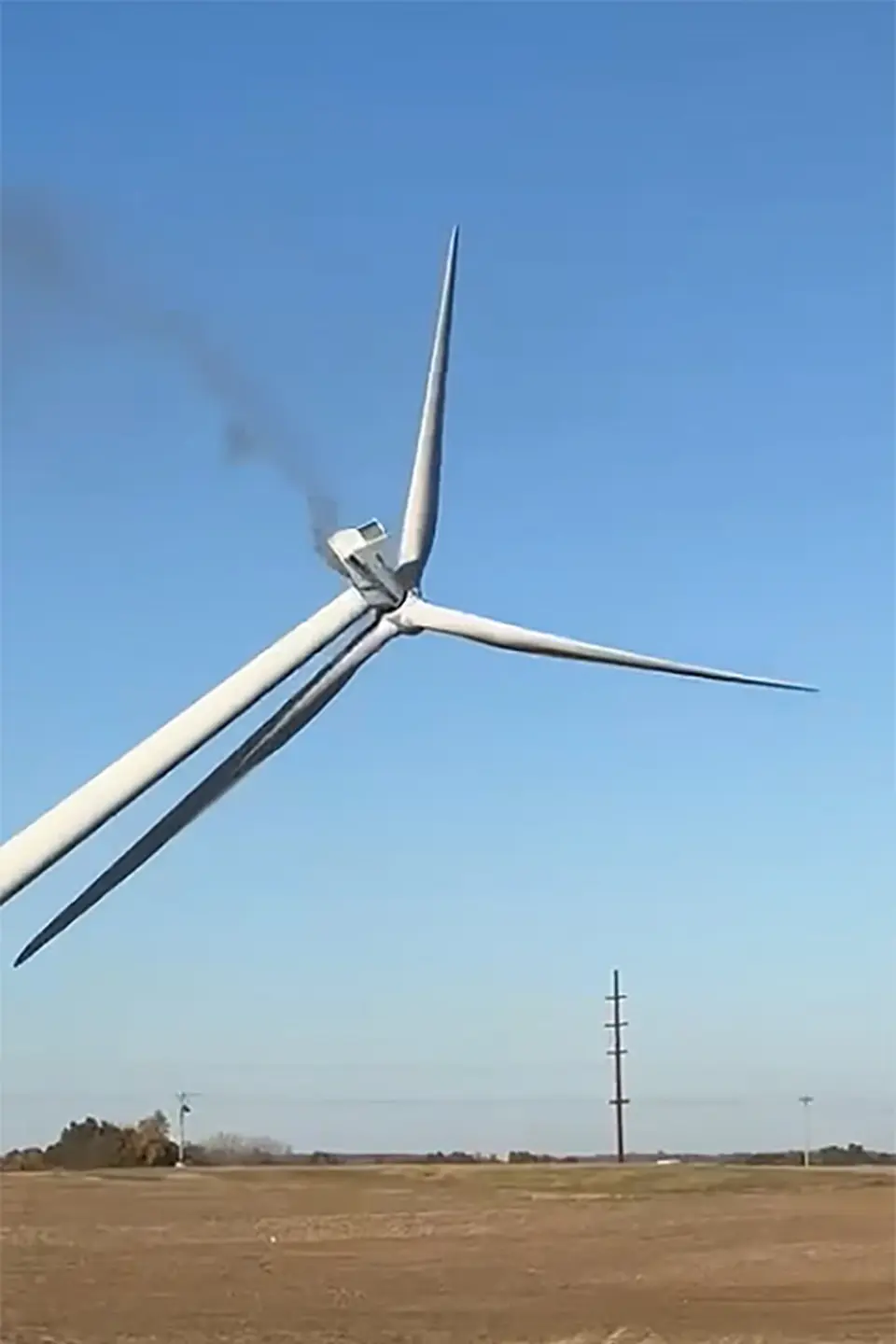A wind turbine near Pittsfield falls to the ground. The structure was decommissioned Wednesday after reaching the end of its life cycle.