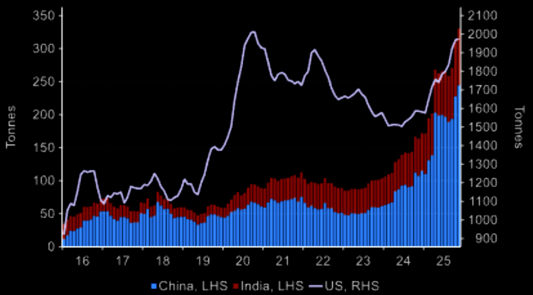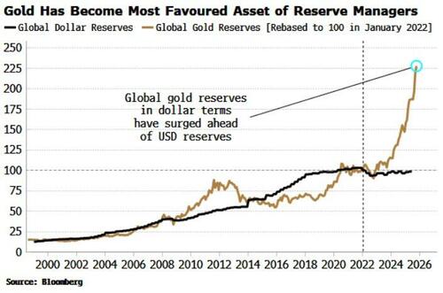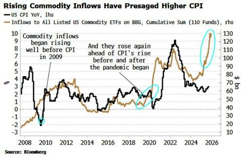 To: Box-By-The-Riviera™ who wrote (218483 ) 12/15/2025 6:33:07 PM From: TobagoJack Respond to of 218598 ditto ditto zerohedge.com Gold Rally Is Blazing A Trail For Commodities BY TYLER DURDEN MONDAY, DEC 15, 2025 - 11:25 PMAuthored by Simon White, Bloomberg macro strategist, The bull market in gold should remain intact next year, with demand spreading to commodities in general. Is it over? It’s a legitimate question after gold’s explosive performance this year, but there’s little reason to doubt the ascent can’t continue, albeit at a slower pace. Not only that, commodities are set to join the fray as the hunt for real assets broadens out in a more inflationary world.Nothing moves in a straight line, so it’s fair to expect some sort of pullback in gold next year, but the fundamental underpinnings will keep the bull market in place. The same applies for silver, although as gold’s volatile cousin, its ride could be a lot more stomach churning. It’s critical to remember that in regime shifts, recent history is no longer a guide, but a shackle.Gold’s rally this decade may have been formidable, but it’s still not a patch on its near-vertical rise in the late 1970s. Investors should keep an open mind. [url=] [/url] Bullion’s rise in this cycle was initiated by strong central bank demand from emerging-market countries. That drew in retail investors, too. Neither looks like they’re about to turn into net sellers.EM central banks started ramping up their gold purchases after the bruising of the GFC . That’s continued uninterrupted ever since, with total holdings more than doubling to over 400 million ounces. But there was a sea change in reserve buying after the Russia-Ukraine war in 2022. Central bank purchases of dollar assets stopped rising, while those of gold quickened. And as the price of gold started to pick up, valuations rose. As a result, the dollar value of bullion reserves surged ahead of other dollar-denominated reserve assets. [url=] [/url]The gold buying of EM central banks has leveled off for now. But there is no obvious reason for them to turn into significant net sellers. The case for diversifying from the dollar has not weakened: the freezing of Russia’s reserve assets still sets a precedent for other countries deemed miscreants by the West, and there remains a US administration inimical to the dollar-based global trading system. Furthermore, it’s conceivable developed-market central banks could start buying gold too. They have been net sellers since 1970s, but they would also benefit from adding to their holdings, as the risk of fiat currency debasement has risen with the preponderance of historically high fiscal deficits.Central-bank zeal for gold has also spread to retail investors. As with the banks, EM buyers were first off the mark, while buyers in North America and Europe only belatedly joined in (using ETF purchases as a proxy for retail trade). Moreover, Asian investors have resumed their buying with even more verve after a brief hiatus mid-year. [url=] [/url] Certainly in Europe and North America – where ETF purchases are much larger than in Asia – there is little sign that buying is reaching the sort of climax that typically rings the bell for a major reversal in gold prices. It will take an erstwhile buyer of gold to turn into a net seller to seriously jeopardize the rally: there just does not look like a catalyst for this yet.In a world profligate with risks and uncertainty, gold serves as an unimpeachable asset, insulated from the financial system and outside the clutches of governments who will increasingly be tempted to debase their currencies to inflate away their colossal debt loads. But other assets resistant to debasement, ie real assets, will also look increasingly attractive alongside gold and other precious metals.Commodities stand out in this regard. The last time inflation was persistently elevated was in the 1970s, when commodities provided the second-best real return of the major asset types, after gold. [url=] [/url]More commodities are breaking out of their post-pandemic three-year ranges, including aluminum, tin, LME copper, coffee, live cattle and natural gas. Further, inflows into commodity ETFs have risen rapidly this year. The previous two times that happened, in 2009 and 2021, it foreshadowed a significant rise in inflation. [url=] [/url]The market is singularly not positioned for a reacceleration in inflation, yet that is just what we may get. Gold, silver and other precious metals are already delivering impressive returns as the market hedges not only the risk of debasement of fiat currencies, but the fragility of the financial system itself. Commodities are in a position to also fulfill that role next year. But they could see much greater upside than gold as even a minuscule re-allocation away from the vastly larger stocks and bonds universe would be like putting a firehose through a straw. 2025 was gold’s year, but 2026 could well belong to commodities.