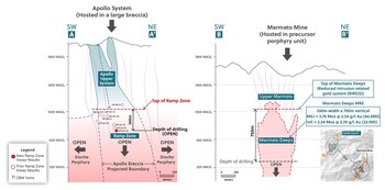 Cautionary Note to Readers: Although the Apollo project (including the Ramp Zone) and the Marmato Lower Mine (also referred to as the Bulk Mining Zone or formerly as Marmato Deeps) share certain geological characteristics, information regarding the Marmato Lower Mine is not necessarily indicative of mineralization in the Ramp Zone. Information regarding the Marmato Lower Mine has not been independently verified by the Company or its Qualified Person in accordance with National Instrument 43-101 – Standards of Disclosure for Mineral Projects ("NI 43-101"). All information presented herein regarding the Marmato Lower Mine is derived from the NI 43-101 compliant technical report titled "Technical Report for the Marmato Gold Mine, Caldas Department, Colombia, PFS of the Lower Mine Expansion Project," with an effective date of June 30, 2022 (filed November 23, 2022). This report is available on Aris Mining Corporation's website at: edge.prnewswire.com.