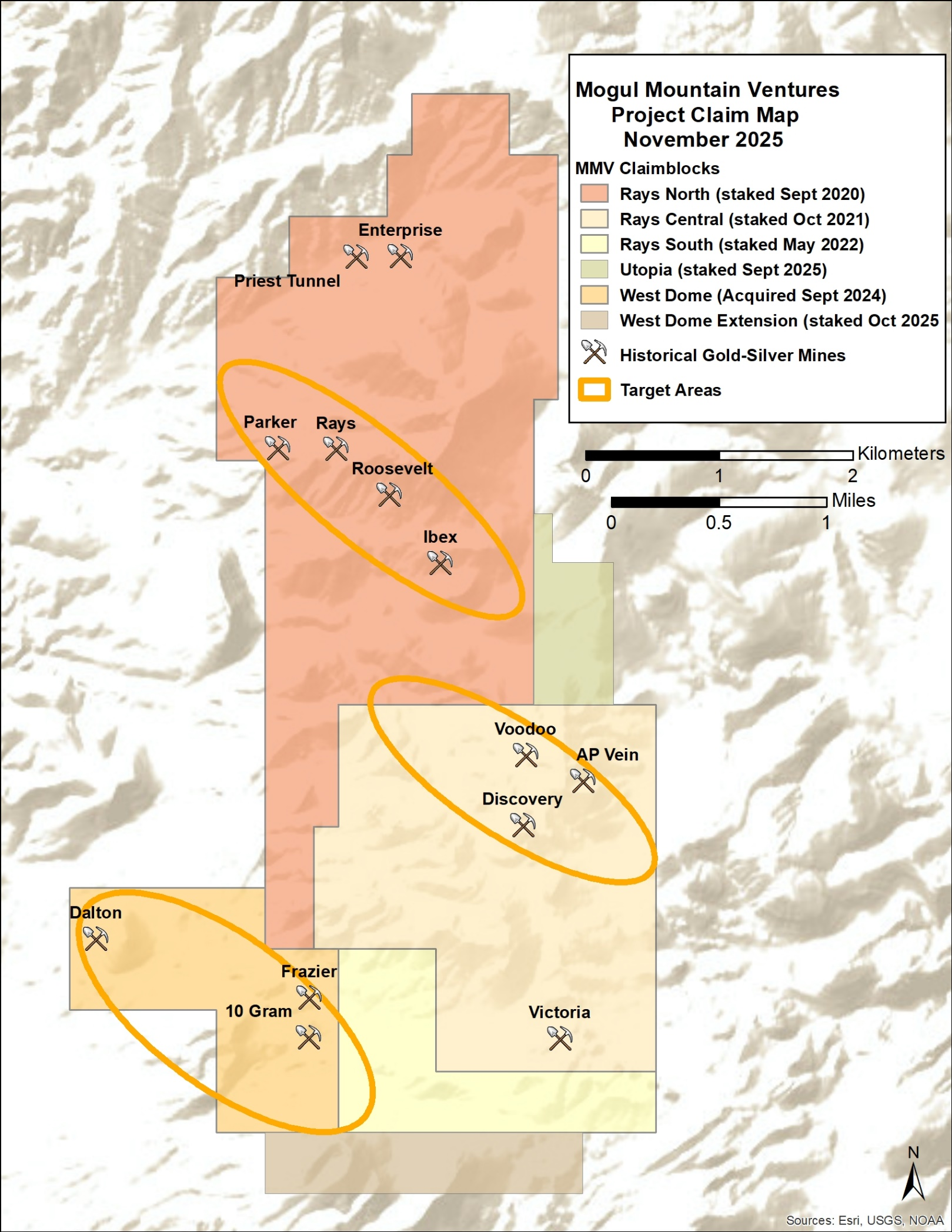 Mogul Mountain Ventures Corp. is a Canadian-based gold-silver mineral exploration company focused on high-potential gold and silver assets in Nevada's prolific Walker Lane Trend. The Company’s flagship project, the 5,000+ acre Rays-West Dome Project, is located 12km north of the historic Tonopah mining district and consolidates multiple brownfield targets with historic mine operations, high-grade surface samples, and large-scale structural features.