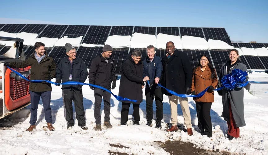 From China, the first offshore open-sea floating solar plant has come online. . And it has a fish farm underneath.HG14 is expected to generate about 1.78 TWh annually, meeting roughly 60% of electricity demand in Kenli district, avoiding 1.34 million tons of CO2 emissions and saving more than 500,000 tonnes of coal. The project also integrates aquaculture under a “PV-above, farming-below” model, enabling dual use of marine space and additional revenue streams.And in Waukegan, Illinois, which seems a long ways from China, but where rational solar policy developed under Governor Pritzker is playing out, there’s this: a Superfund site, badly polluted with industrial waste in the 1950s and 1960s, is the new site of a solar farm. As Kari Lydersen reports,The 9.1-megawatt Yeoman Solar Project, which went online last month, can provide energy for about 1,000 households, as well as the Waukegan school district, which owns the land.