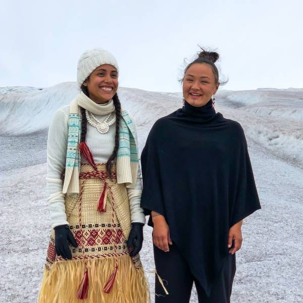 Kathy Jetnil-Kijiner and Aka Niviana atop the Greenland ice sheet.