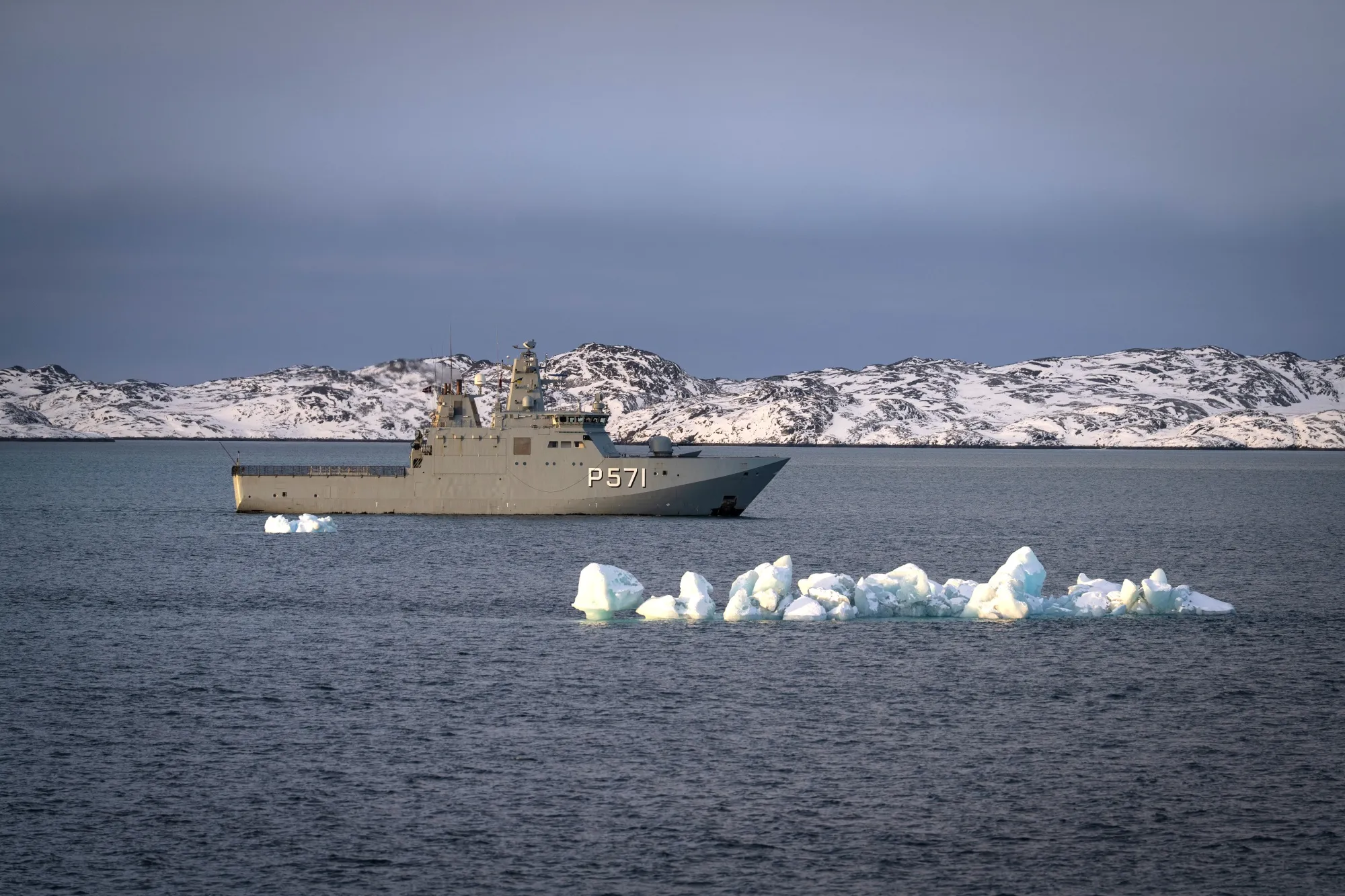 A Danish naval vessel patrols in Nuuk, Greenland, on Jan. 15.Photographer: Alessandro Rampazzo/AFP/Getty Images
