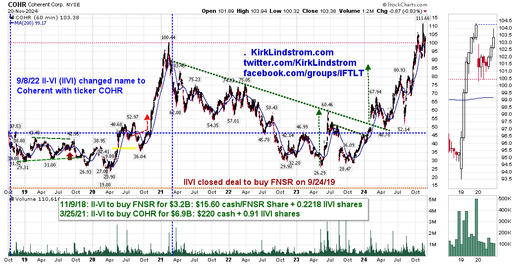 ==>My Facebook " Investing for the Long Term" group with 4,239 members as of 3/31/25. This is my Silicon Investor board where I will post charts, ideas, rambling, newspaper clippings, etc. that are investment related (stock market, housing market and US economy.) I welcome all investment related discussion but please hold politics to a minimum. My Best Stock Gain in a single day was INKT on 7/11/25: ![]() Latest Poll for 3/31/25: Buy, hold, sell? Msg: 35084422 My ROTH vs Standard IRA Article: Msg: 34638951 IF you don't want to defend your opinions on my board, then please post them elsewhere as this is not a dumping ground for opinion spammers without the courage of their convictions. Please don't post links or articles from "Zero Hedge". See why at Message 34637688 . SOX Scan: Message 34100408 Breeze's Guide to Getting Started with eWave Message 34917073 Have you tried my newsletter? You can get a FREE SAMPLE issue to see what it is about. Or Subscribe now and see what you've been missing! Time Conversion: Times are EST Message 33167578 ![]() . ![]() Past performance does not guarantee future results. Timer Digest ended publication in early 2021: I made their cover twice over the roughly 11 years they covered me. ![]() The company II-VI bought Finisar, then Coherent. After buying Coherent, it took the "less scientific" Coherent name, but the management was from II-VI which had just successfully integrated the Finisar acquisition. I used the similar weakness in the stock after announcing the acquisition to load up on more shares (mostly in my ROTH) which have done quite well for me as well as my newsletter subscribers. ![]() ![]() ![]() Poll: How old are you?https://www.siliconinvestor.com/readmsg.aspx?msgid=32993867 ==> 2017 Timer Digest "Market Timer of the Year" Award!!! (I tied for 3rd in 2019!) ![]() Favorite Articles: