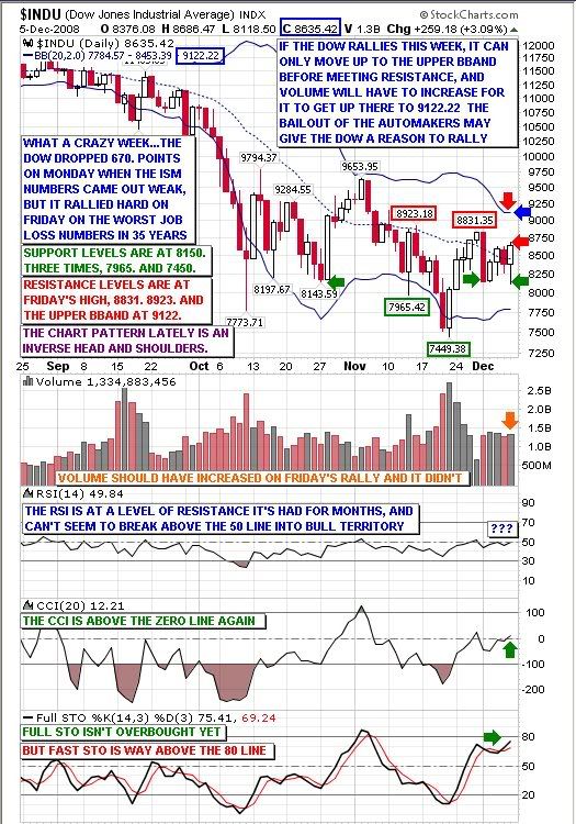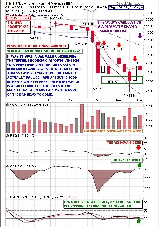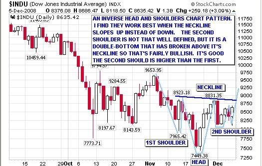 I will be posting daily and weekly charts with annotations here on a regular basis. I also post relevant news that may have an influence on which way the market moves. I do this because it helps me to think about what may happen next in the movements of the DJIA, so that I can play the trend correctly. Here is an example of what my annotated charts look like: I created this one on 11-05-08 ![]() ![]() Here's the Inverse Head & Shoulders chart pattern (bullish) the Dow is showing on the daily chart: ![]() And here is a weekly chart for the week ending 12-05-08 ![]() ![]() If you like to watch the Dow too, feel free to post your thoughts on which way it might go next. Happy Trading, zz ![]() www.market-master.net | ||||||||||||||
