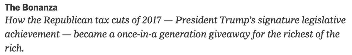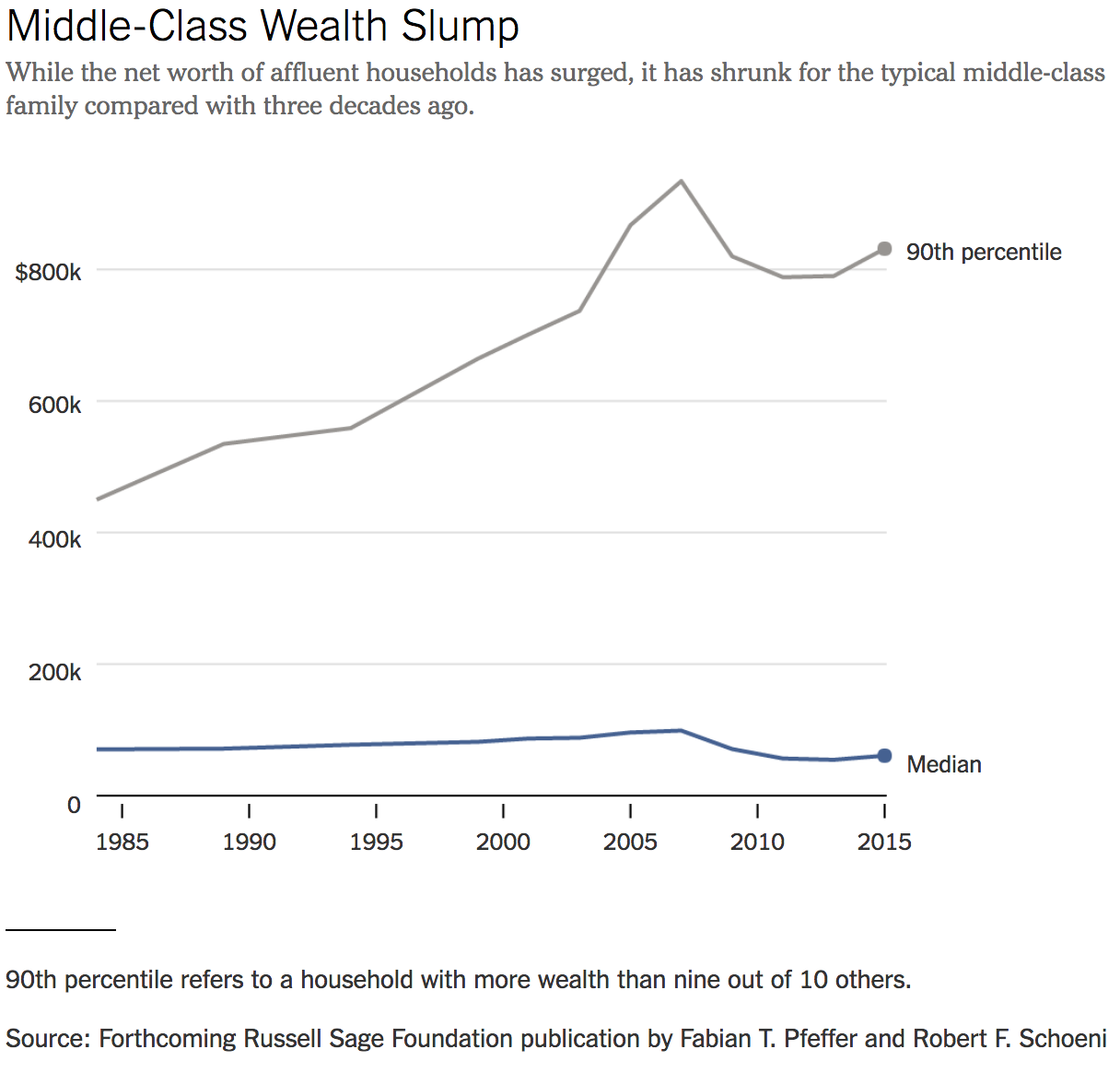 The Income and Wealth Inequality in this country is exploding out of control.  Donald Trump is determined to make it worse with every passing day of his presidency. BORROW & SPEND REPUBLICANS.    "For the first time on record, the 400 wealthiest Americans last year paid a lower total tax rate — spanning federal, state and local taxes — than any other income group, according to newly released data."  Trump's Tax Law: Collect extra thousands of dollars from each of the Bottom90% and give to Top1%. Take extra national debt and give to Top0.01%. I am paying at least extra $4-5k because of Trump tax law. The general population, the income growth should be approximately at the pace of GDP growth. But for the past 40 years, since Ronald Reagan was president, there has been relentless wealth transfer from the Bottom90% to the Top1%, especially to the Top0.01% (Billionaires). AMERICAN CAPITALISM IS SERIOUSLY BROKEN. Below in the Chart: 90th-99th percentile = Upper Middle Class = After-Tax Annual Income of $120,000 to $425,000  nytimes.com I dubbed the Top0.01% the Billionaires. ===== The growth of the number of people who need secondary jobs to pay the bill, and the growth of the Top0.01% Income look eerily similar.  theguardian.com ===  "typical household, amazingly, has a net worth 14 percent lower than the typical one did in 1984, according to a Russell Sage Foundation publication." nytimes.com TWO SEX CRIMINALS ... /cdn.vox-cdn.com/uploads/chorus_image/image/64682983/GettyImages_700334384.0.jpg)   | ||||||||||||