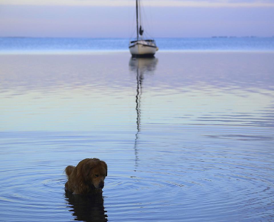 Lewis Bay on Cape Cod A ferry headed in to Hyannis harbor (distant center) My winter Sperrys that are great in the summer And the best thing - my 10 year old lab, chill'n after some low tide sea gulls chasing
