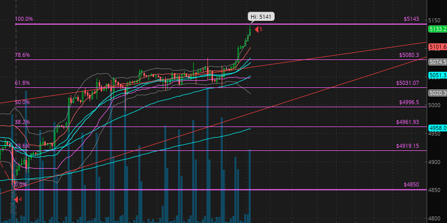 End of the line for NQ Ending Diagonal. It CANNOT exceed 5143 by EW Rules... That mean THE TOP IS IN!