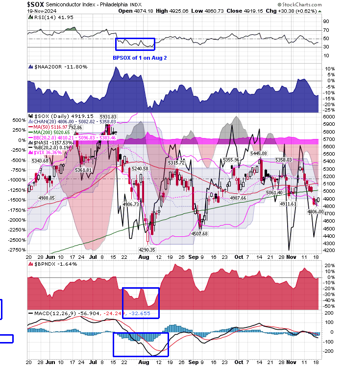 April 23, 2024 The market has been over sold. BPNDX reading of 24 and a BPSOX of only 1 has led me to buy the SMH for an oversold bounce.