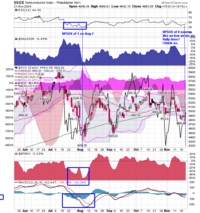 April 23, 2024 The market has been over sold. BPNDX reading of 24 and a BPSOX of only 1 has led me to buy the SMH for an oversold bounce.