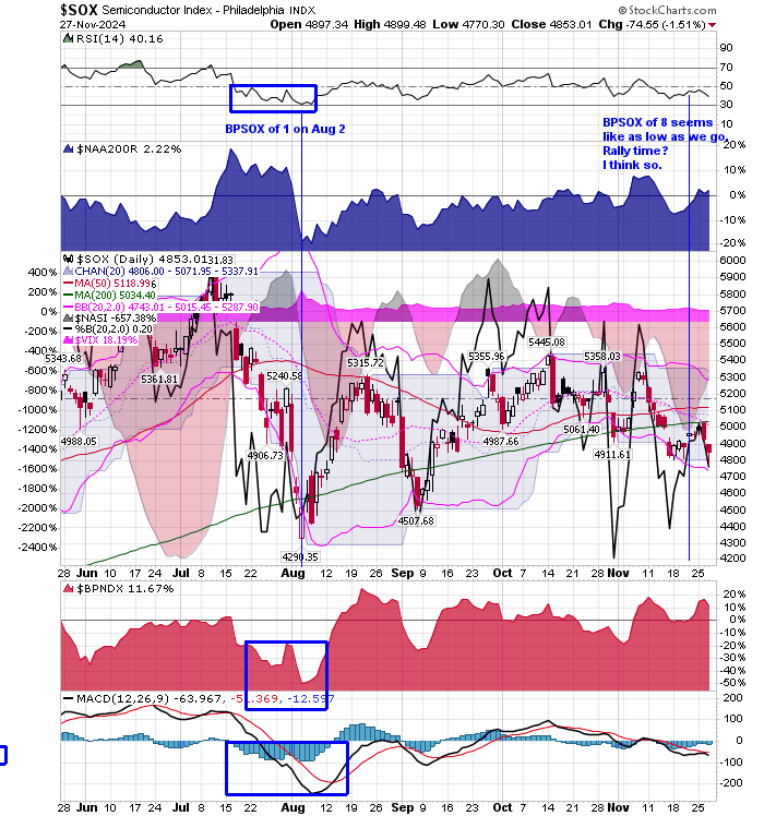 April 23, 2024 The market has been over sold. BPNDX reading of 24 and a BPSOX of only 1 has led me to buy the SMH for an oversold bounce.