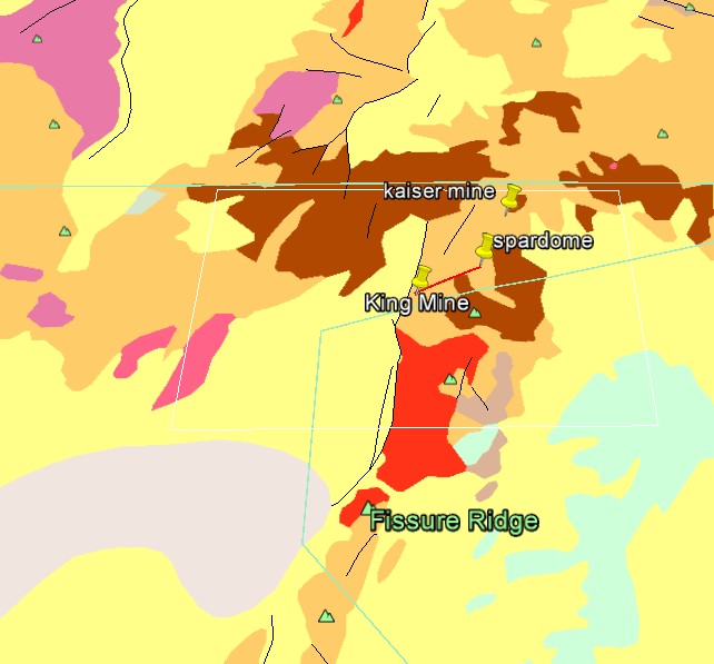 you can zoom in on king here and see its rock types. mrdata.usgs.gov awesome stuff at king mine and surrounding area Red block is Plutonic and Intrusive 70 mil to 100 mil years old Multiple Events happened at King if you check around on the map you will see other mines around the Red Plutonic Intrusives nbmg.unr.edu