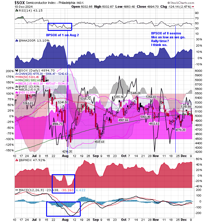 April 23, 2024 The market has been over sold. BPNDX reading of 24 and a BPSOX of only 1 has led me to buy the SMH for an oversold bounce.