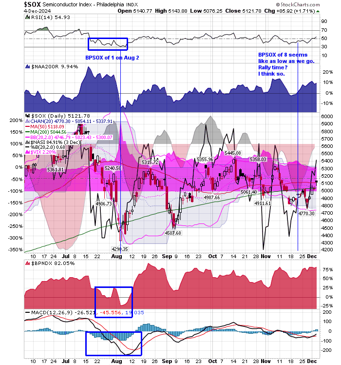 April 23, 2024 The market has been over sold. BPNDX reading of 24 and a BPSOX of only 1 has led me to buy the SMH for an oversold bounce.