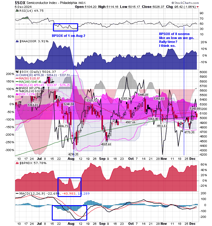 April 23, 2024 The market has been over sold. BPNDX reading of 24 and a BPSOX of only 1 has led me to buy the SMH for an oversold bounce.
