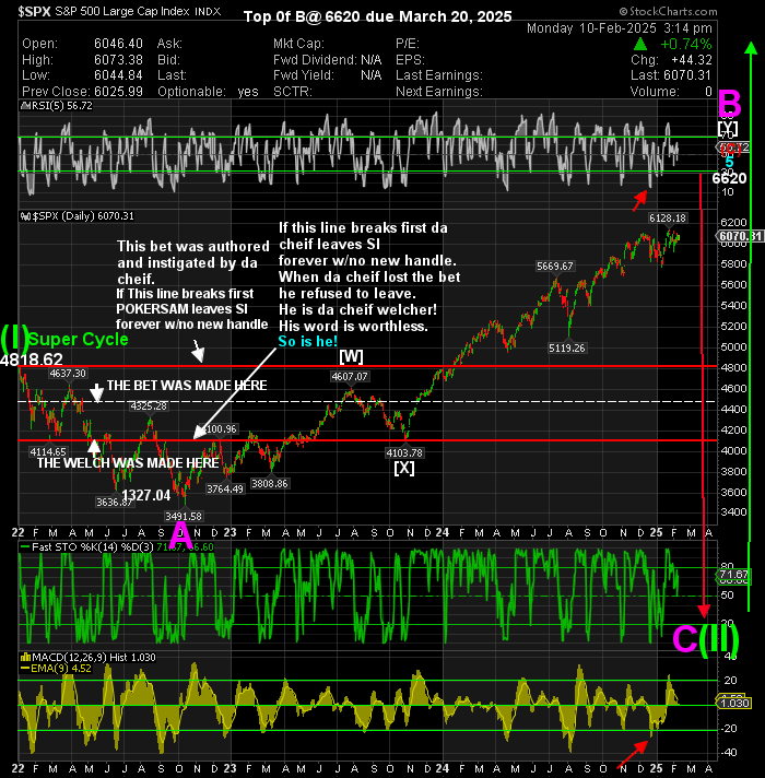 Windy, In your last bit of nonsense addressed to me you had one thing correct. I do post detailed charts in all time frames to my subs. You want me to post them to you. Sorry, I will not do that. I know you need the help desperately, but you will not get any more help from me than what I doll out here.