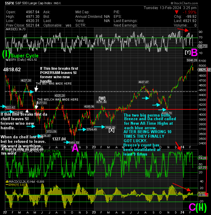 Windy, In your last bit of nonsense addressed to me you had one thing correct. I do post detailed charts in all time frames to my subs. You want me to post them to you. Sorry, I will not do that. I know you need the help desperately, but you will not get any more help from me than what I doll out here.