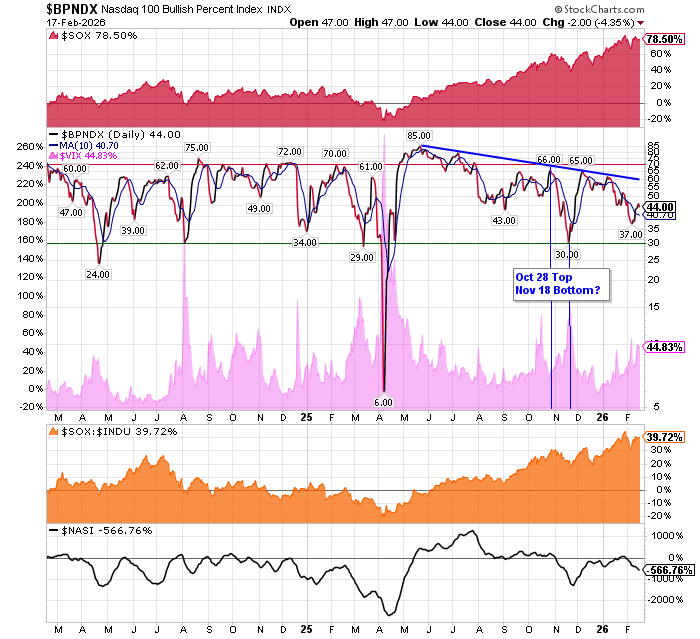 After the market closes updated data on the NASDAQ 100 and Point and Figure Data for the NDX. Also Point and Figure Data on the 30 SOX Components. An explanation of PnF Charting can be found here: