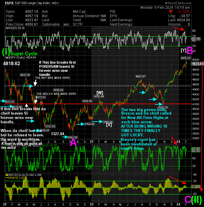 Windy, In your last bit of nonsense addressed to me you had one thing correct. I do post detailed charts in all time frames to my subs. You want me to post them to you. Sorry, I will not do that. I know you need the help desperately, but you will not get any more help from me than what I doll out here.