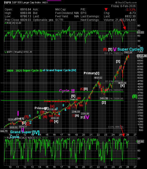 Emphasis will be on short-term to long-term Index trends. The S&P 500 indicates that we are very late in Super Cycle (I) of Grand Super Cycle [V]. Once Super Cycle (I) is complete, we will have a market correction of more than 50%.
